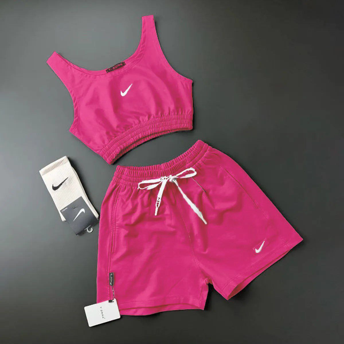 ست نایک نیمتنه تاپی و شلوارک خط دار فری سایز گلکسی 1925