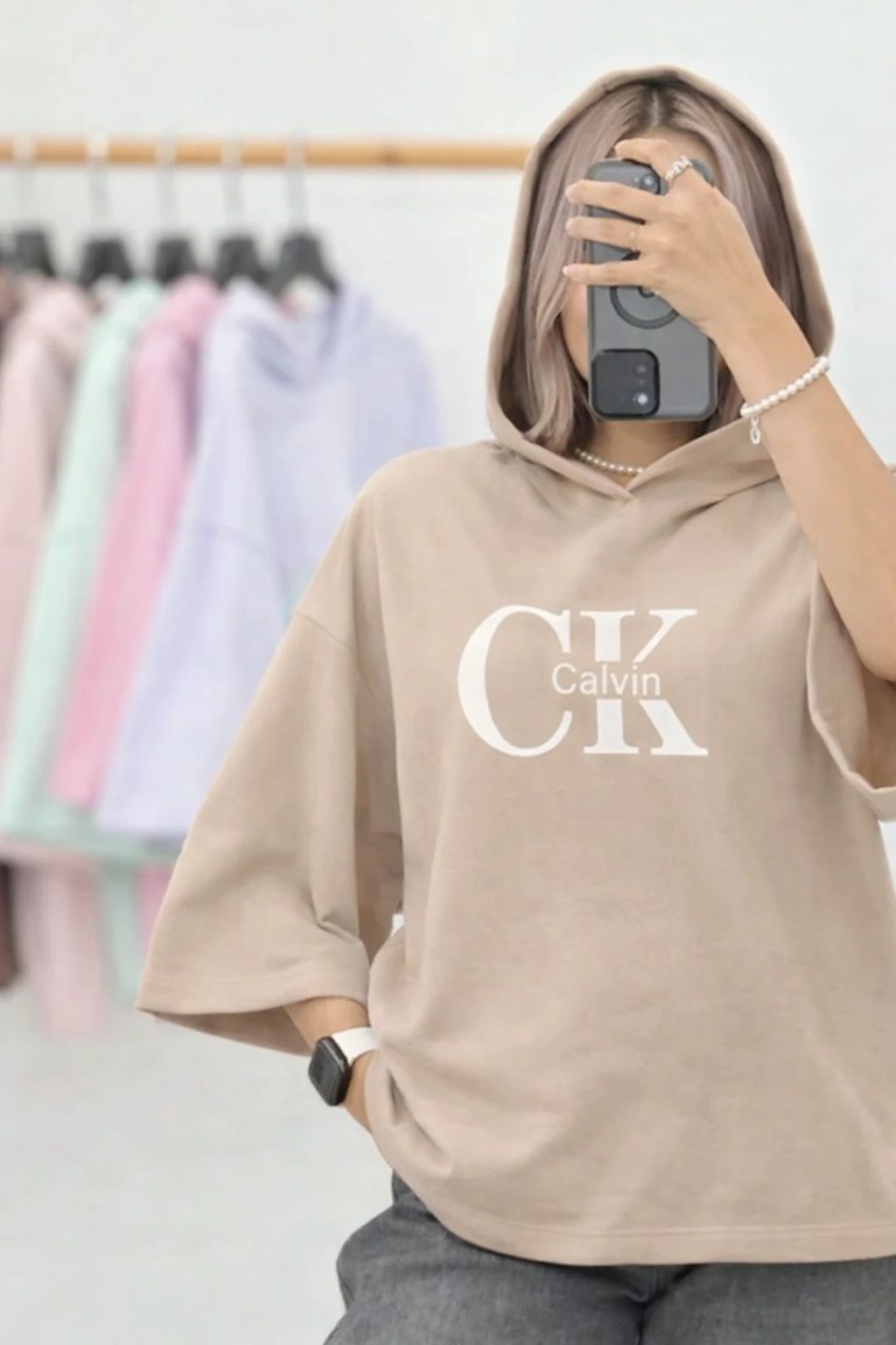تیشرت باکسی کلاهدار پنبه فری سایز دخترانه