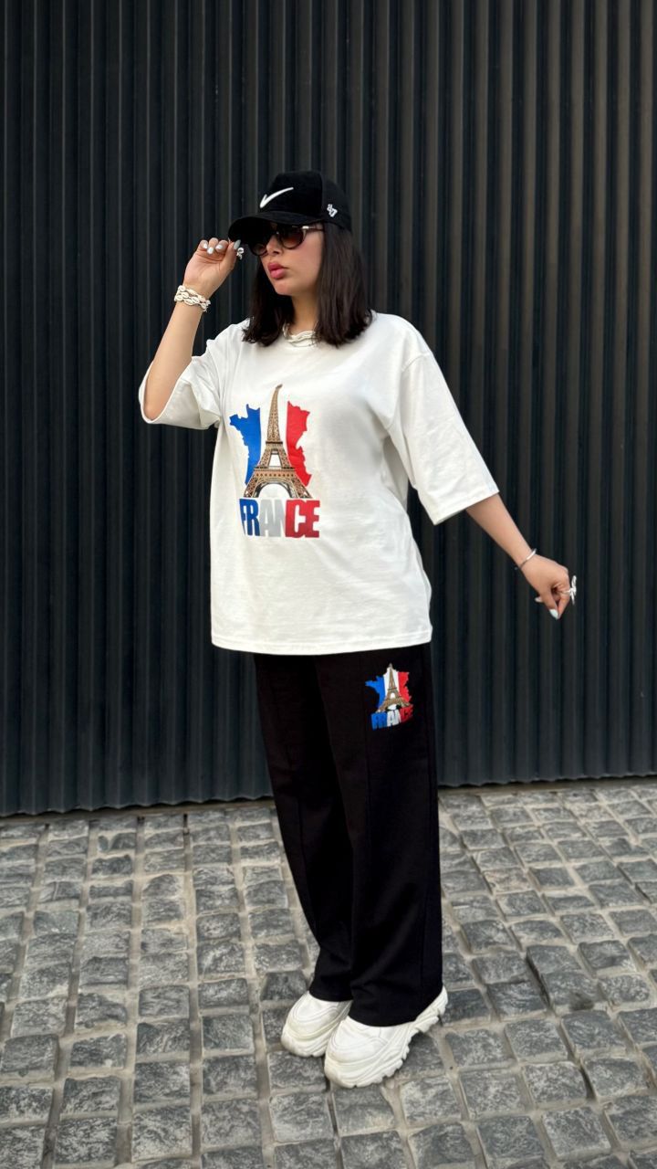 ست فرانسه تیشرت و شلوار گلکسی فری سایز