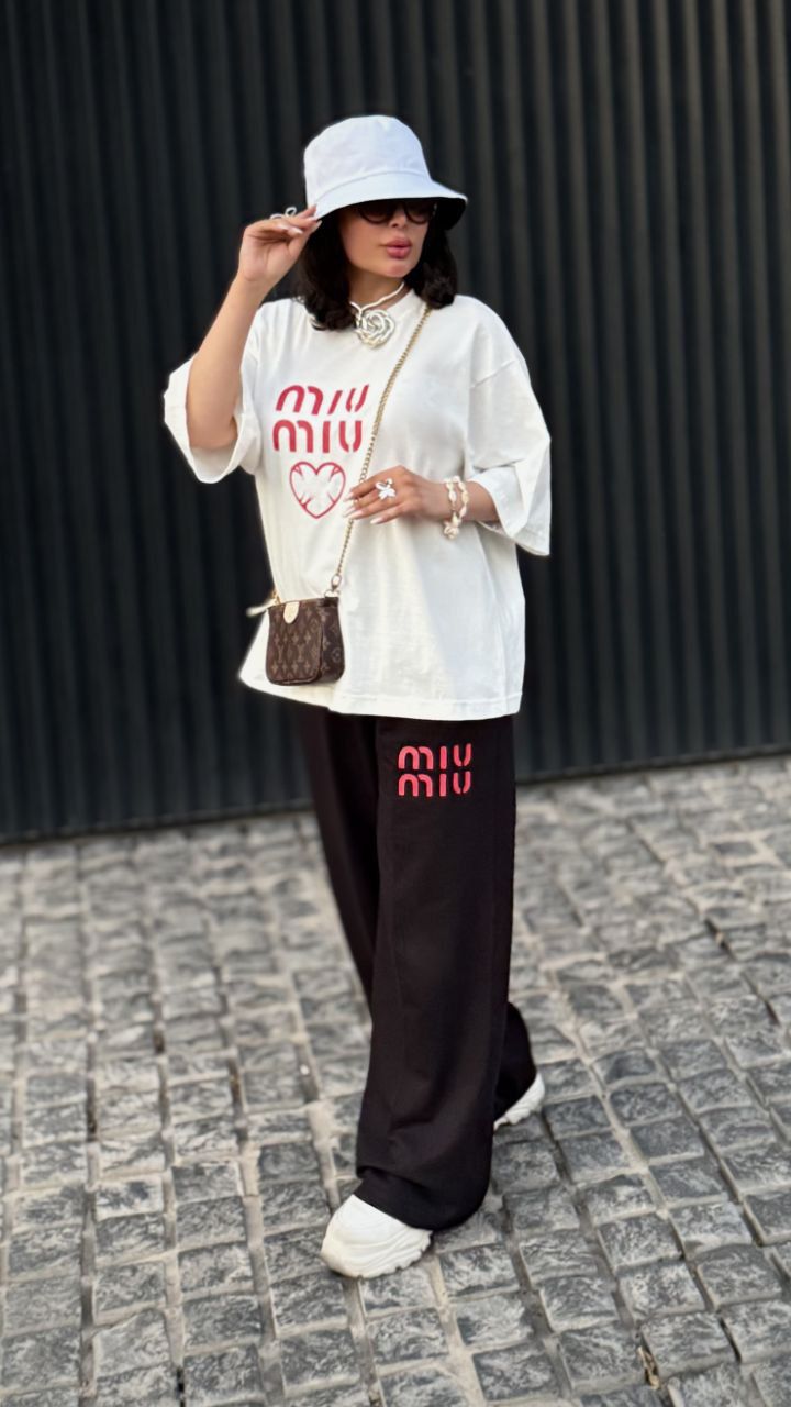 ست میو میو تیشرت و شلوار میو میو فری سایز گلکسی