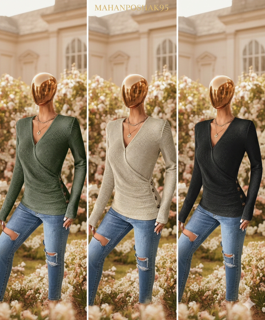 بلوز چپ و راستی بغل دکمه بیسکوییتی فری سایز 100219