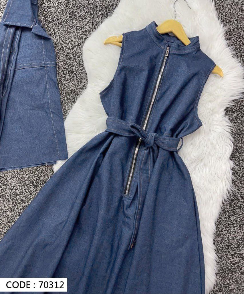 ست کت و سارافون جین تنسل فری سایز 38 تا 46 کد 70312