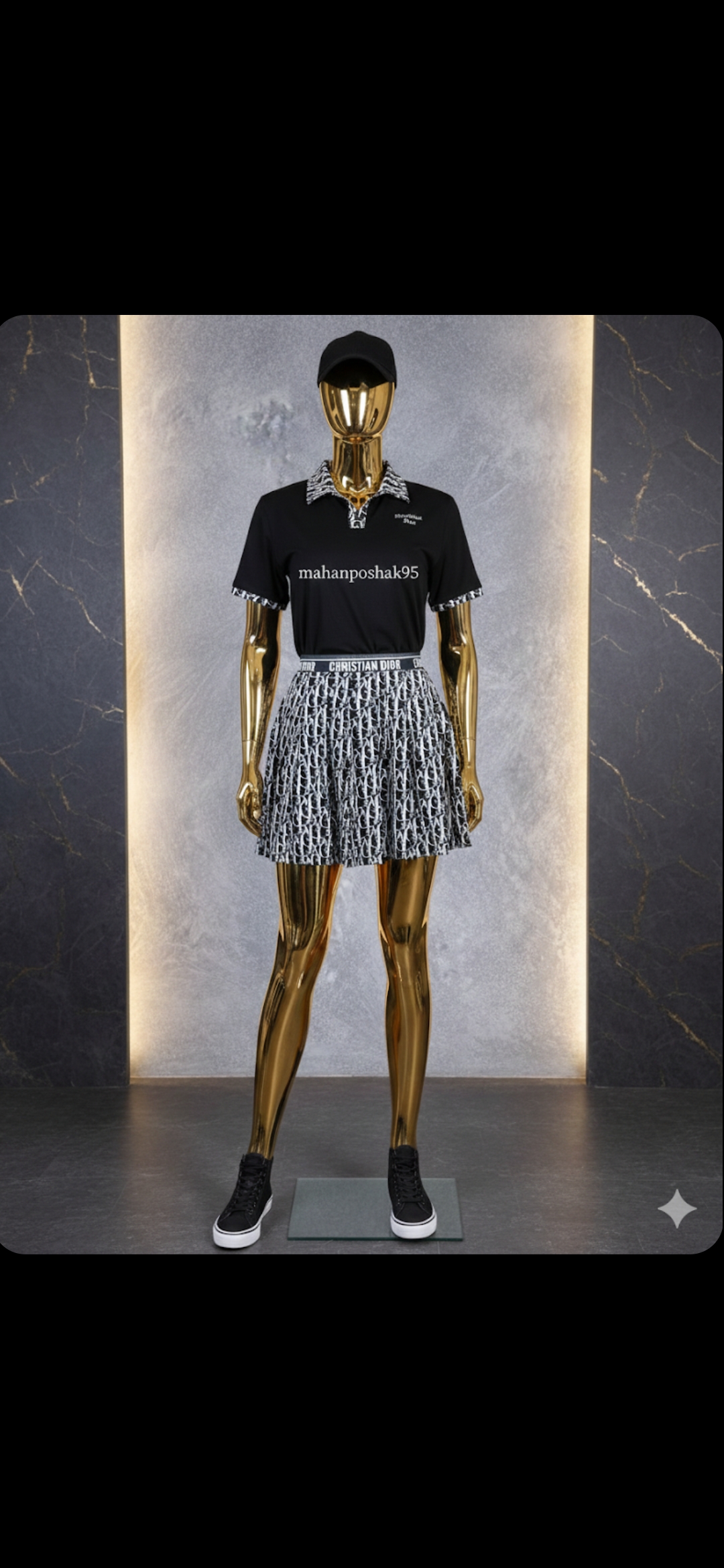 ست تیشرت و دامن پلیسه یقه دار دیور فری سایز 25409