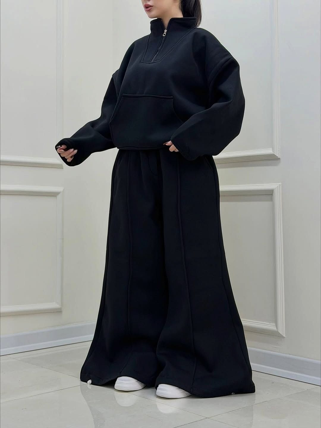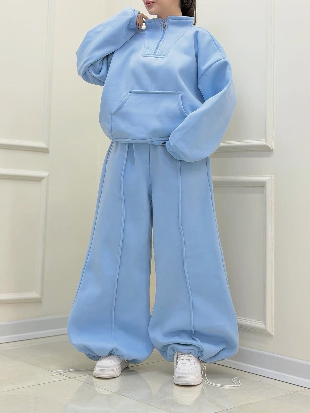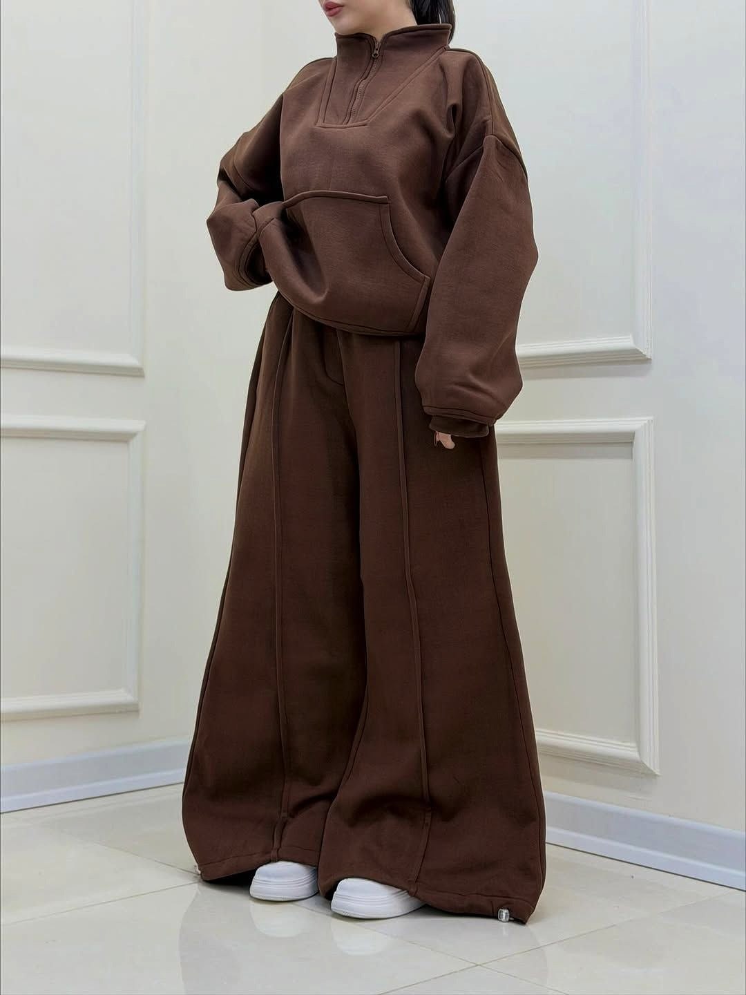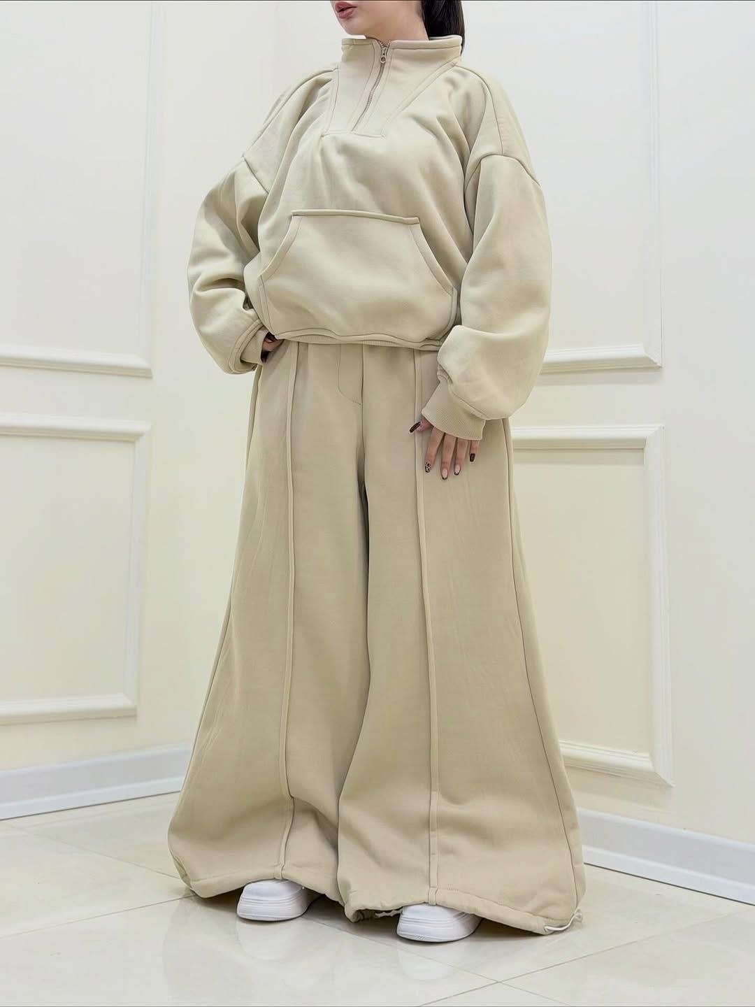 ست هودی شلوار نیم زیپ دورس داخل کرکی فری سایز دمپا گت