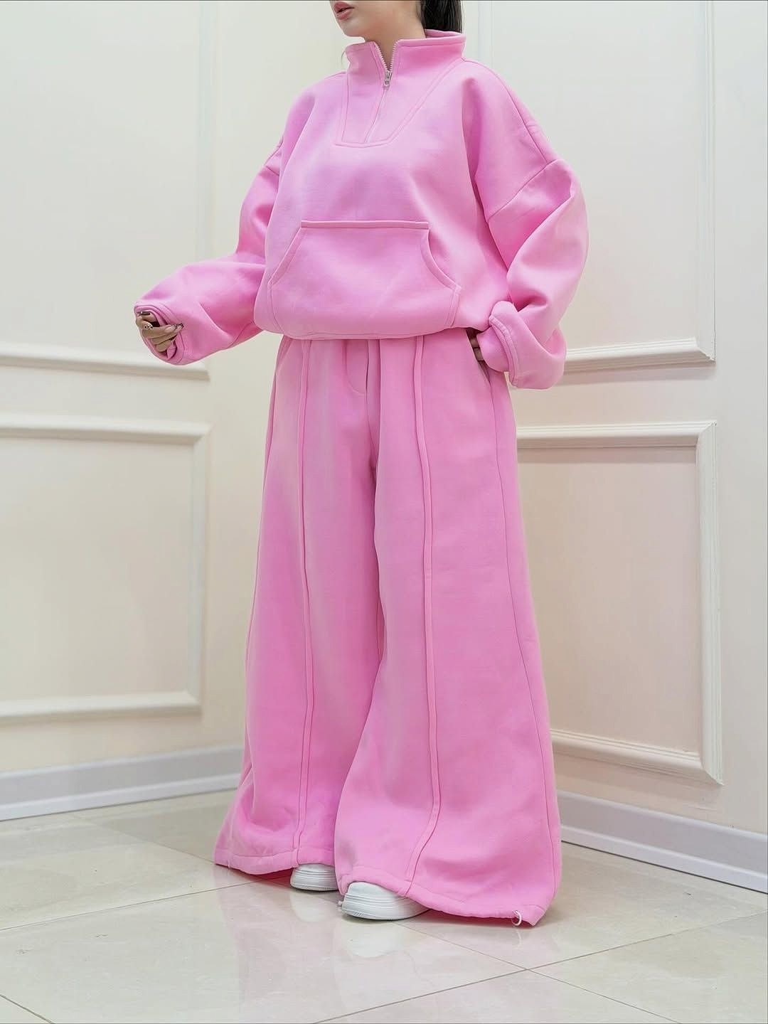 ست هودی شلوار نیم زیپ دورس داخل کرکی فری سایز دمپا گت